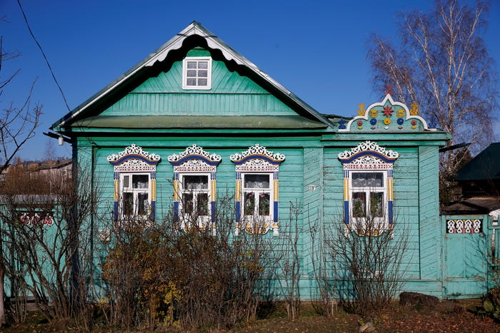 Điểm đặc biệt nhất của những ngôi nhà gỗ ở các vùng nông thôn Nga là mọi chi tiết thủ công rất nhỏ được khắc tỉa khéo léo như mái hiên hoặc cửa. (Ảnh: Maxim Shemetov/Reuters)