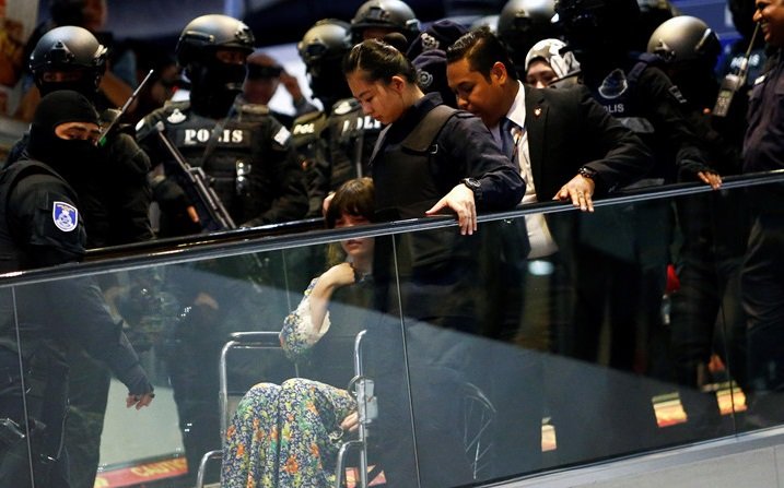 Thẩm phán tòa thượng thẩm Azmi Ariffin tới quầy làm thủ tục tại sân bay, nơi 2 nghi phạm được cho là bôi chất độc lên người nạn nhân.