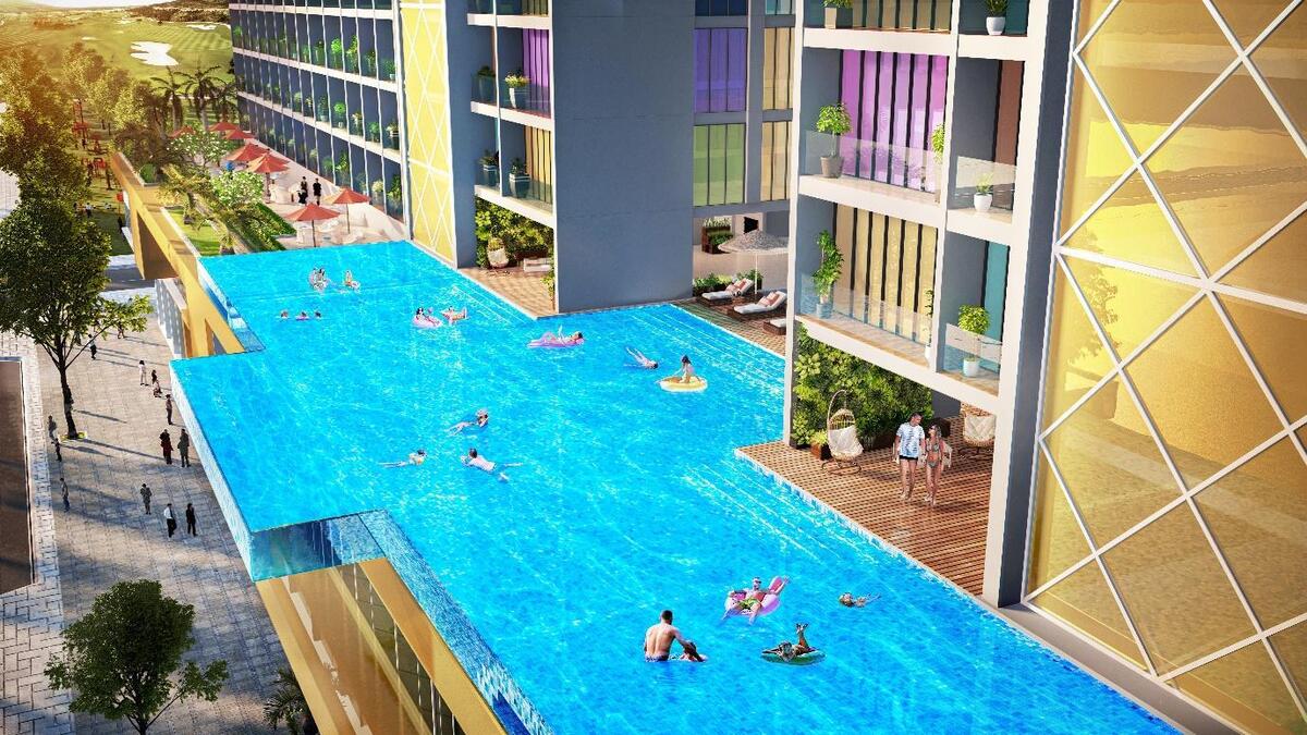 Trong phân khúc bất động sản nghỉ dưỡng với vô vàn các tiện ích cao cấp, bể bơi luôn là điểm nhấn hàng đầu, bởi tiện ích này không chỉ đơn thuần phục vụ nhu cầu sinh hoạt, thư giãn của du khách mà còn thể hiện giá trị của dự án thông qua sự đột phá, sáng tạo trong kiến trúc. Với Dolce Penisola Quảng Bình, bể bơi đáy kính vươn ra không trung chính là món quà đắt giá được dành tặng cho các khách hàng.