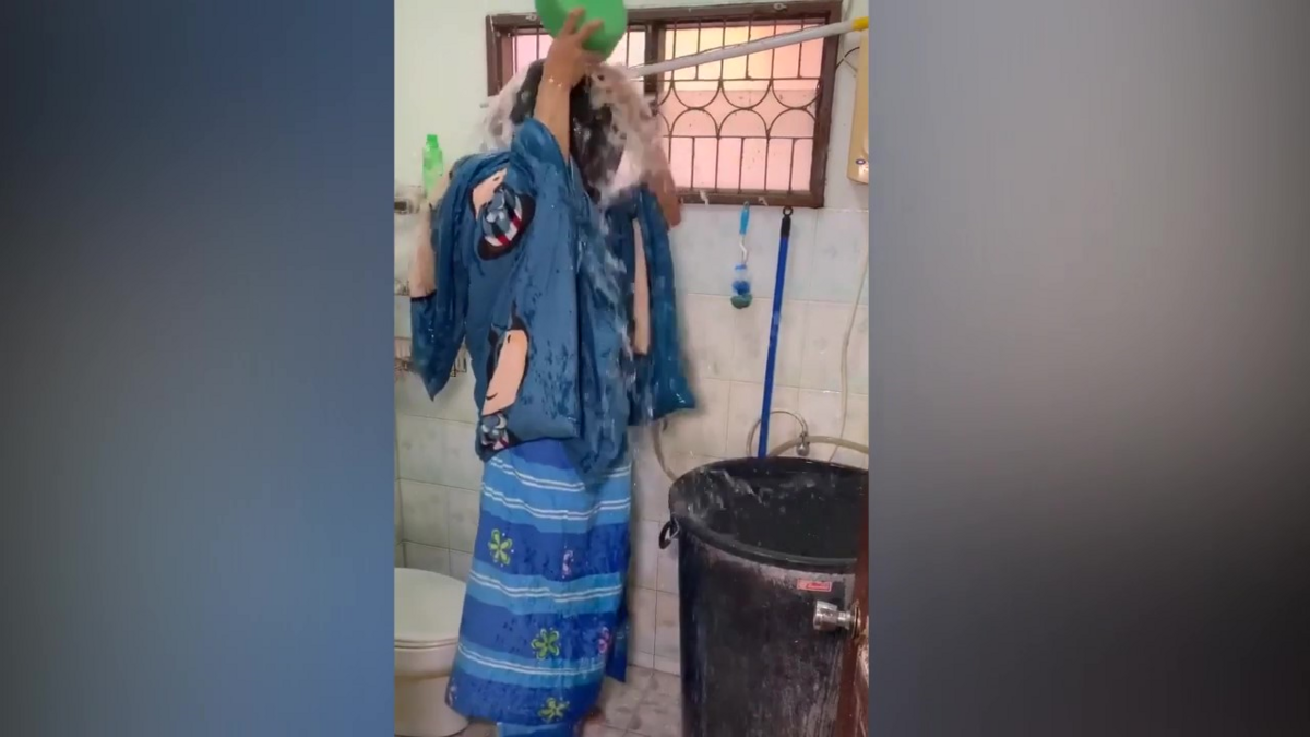 Không biết có hết lạnh không, nhưng cách làm này chính là "tắm giặt" theo đúng nghĩa đen.