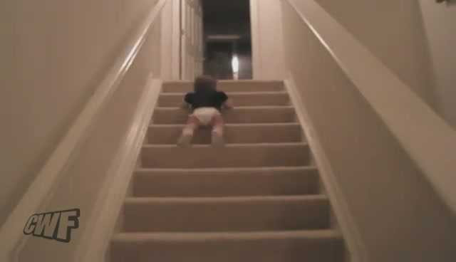 Kiểu xuống cầu thang siêu 'độc' của bé