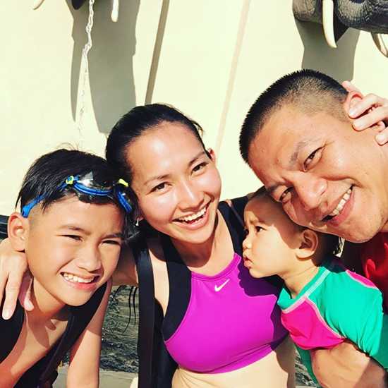 26/08/2016 07:28:00 +07:00Diễn viên 'Hương phù sa' mặc bikini khi đi tắm ở hồ bơi cùng hai con trong kỳ nghỉ ở Las Vegas.