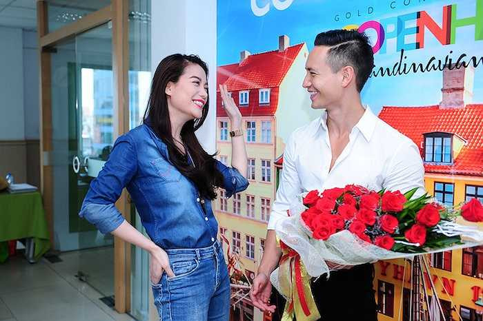 Kim Lý hạnh phúc cầm trên tay bó hoa của Trương Ngọc Ánh.