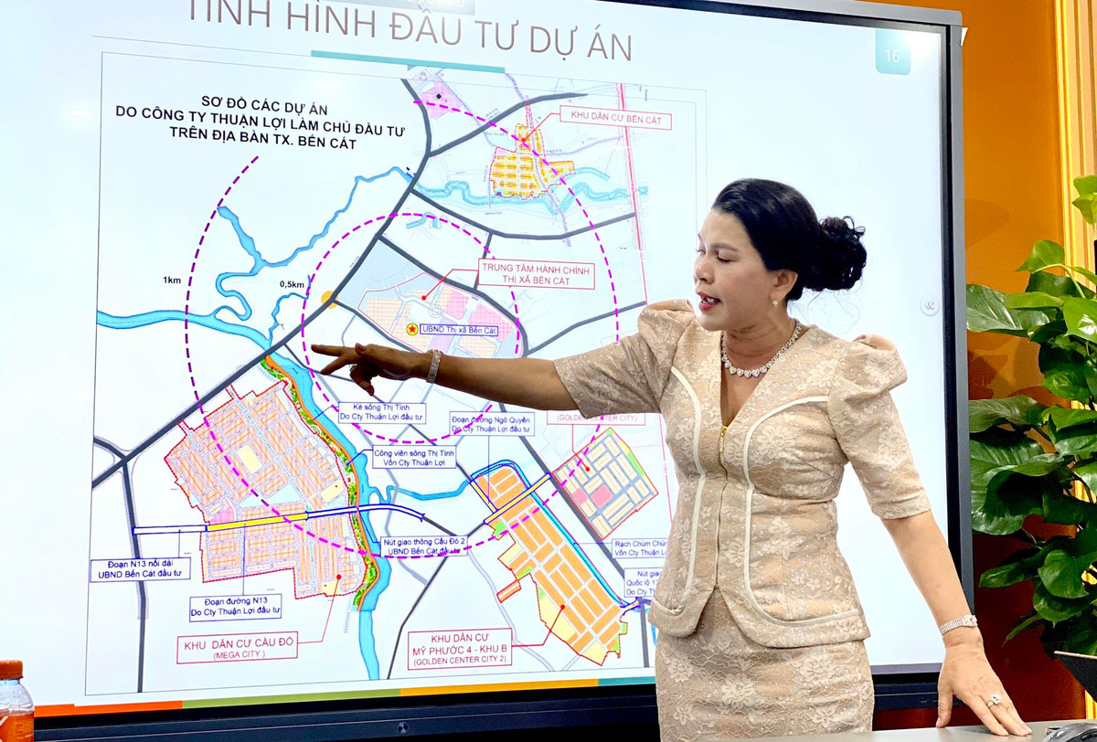 "Như vậy thì Công ty Thuận Lợi đã bố trí quỹ đất phát triển nhà ở xã hội tại 2 dự án khu dân cư Cầu Đò và khu dân cư Mỹ Phước 4 theo đúng phê duyệt quy hoạch của UBND tỉnh Bình Dương", Tổng Giám đốc Kim Oanh Group khẳng định.