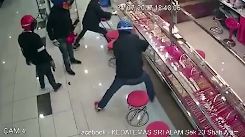 Đoạn video được cửa hàng trang sức Kedai Emas Sri Alam ở Shah Alam, Malaysia, nơi xảy ra vụ cướp cung cấp. Trong video ghi lại toàn bộ nỗ lực "không biết mệt mỏi" nhưng bất thành của 4 tên cướp được trang bị búa tạ và súng ngắn.