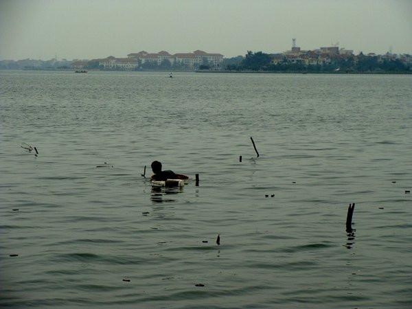 Ngoài việc người dân ven Hồ Tây lặn mò quan tài gỗ tốt, thu lượm tiểu sành kè bờ, thì một thời có cả đội ngũ chuyên lặn mò đồ cổ trong những nghĩa địa dưới đáy Hồ Tây.