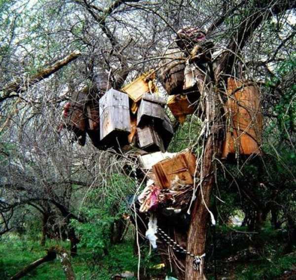 Loại cây mà người ta lựa chọn để đặt xác chết là tuyết tùng, một loài cây cứng cáp, không quá cao và thân cây có nhiều chạc.
