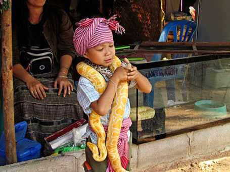 Đến Ban Kok Sa Nga, bạn không chỉ được đắm mình trong những màn múa rắn, đấm bốc với rắn độc đáo mà bạn còn được chụp hình và làm bạn với trăn, rắn.