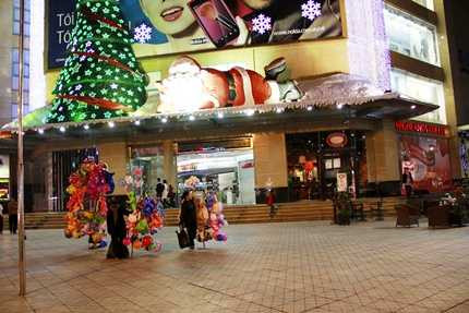 Ngoài ra, họ cũng bày bán những hình mô phỏng ông già Noel cưỡi tuần lộc, thổi kèn, cây thông Noel khổng lồ, những chiếc kẹp tóc hình quả chuông, móc chìa khoá người tuyết, ông già Noel bằng vải, gói kẹo đựng trong đôi ủng,…để hút khách, đặc biệt là giới trẻ. Không khí Noel đã bắt đầu ngập tràn tại các khu mua sắm lớn như Vincom (Ảnh: Bá Thắng)