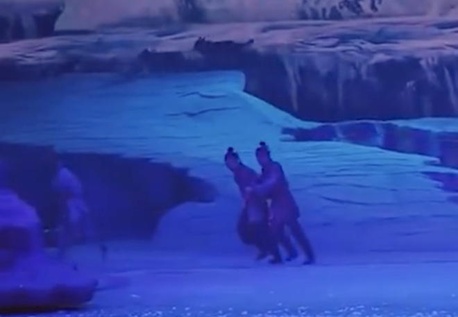 Trong đoạn video đang được lan truyền, một số con sói chạy ra từ hậu trường, nhảy vào lối đi, sát hàng ghế khán giả và rượt đuổi các diễn viên. Chúng không được mang rọ mõm hay bị buộc dây xích.