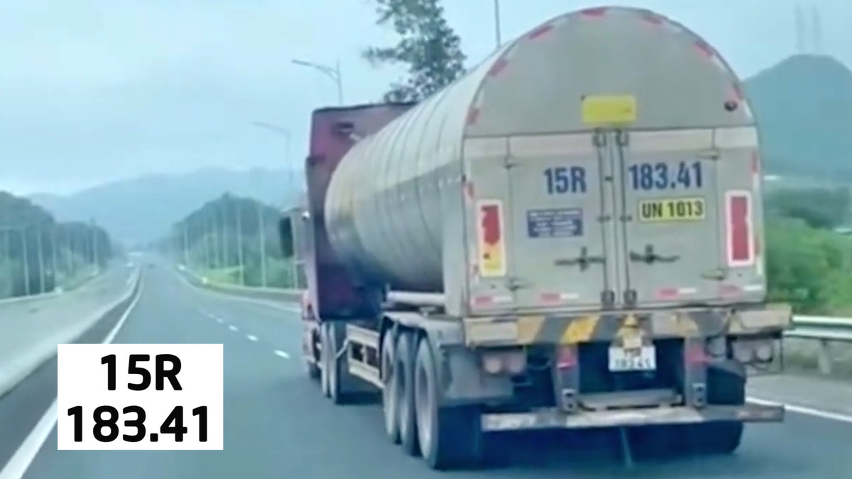 Tài xế xe bồn biển số 15R-183.41 liên tục lạng lách đánh võng trên cao tốc Móng Cái - Hạ Long, các phương tiện đi phía sau không ai dám vượt khiến giao thông ùn tắc.