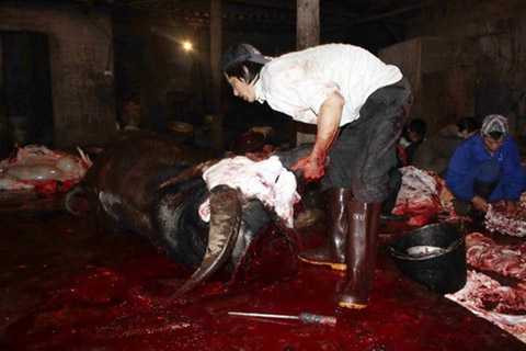 | Một lò mổ trâu ở Phúc Lâm. Ảnh internet |