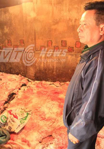 | Ông phó thôn Đỗ Văn Khuyến đã bỏ nghề giết mổ chuyển sang nghề buôn da trâu. Trong ảnh là khu vực xử lý da trâu. |