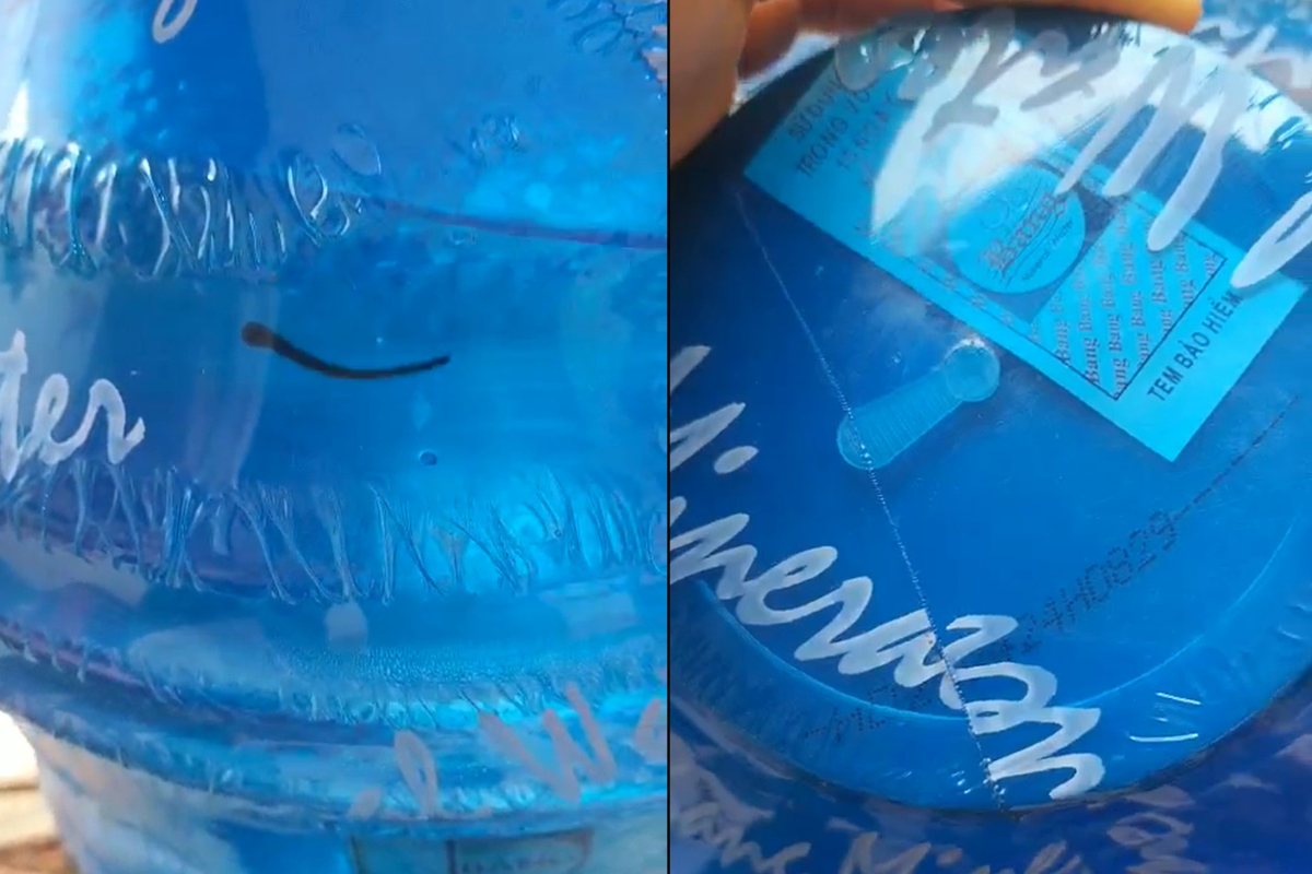 Theo như clip ghi lại, bình nước vẫn còn nguyên tem chưa mở nắp hay xé bọc nilon.