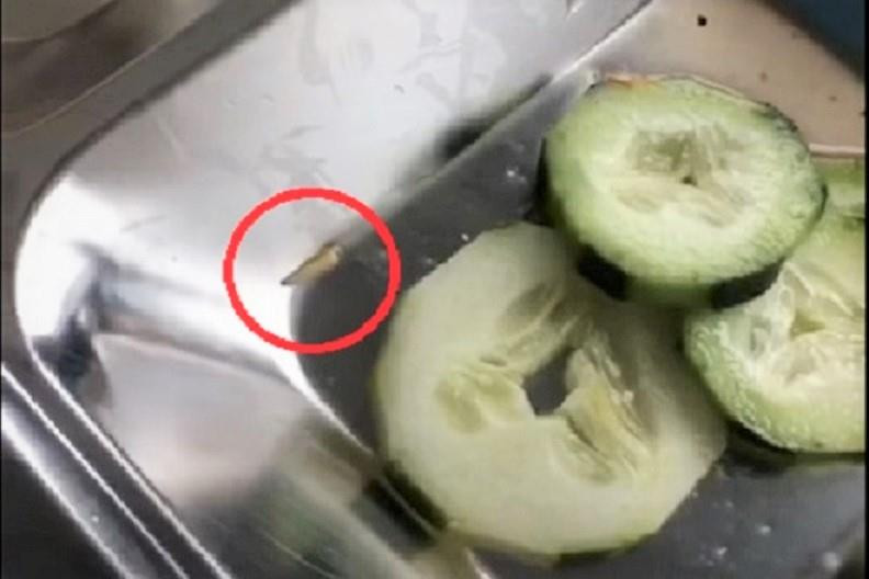 Hình ảnh giòi bò lúc nhúc trong đĩa cơm của công nhân. (Ảnh: Cắt từ clip)