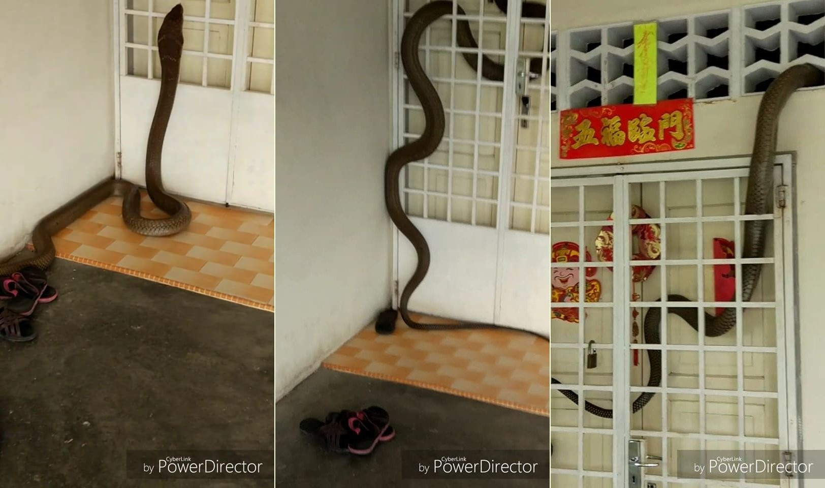Con rắn hổ mang chúa khổng lồ trườn khắp các ngõ ngách trong nhà, sau đó leo qua cửa sổ, thoát thân qua một lỗ nhỏ trên cao; sự việc xảy ra hôm 18/6 tại huyện Batu Pahat, bang Johor, Malaysia.