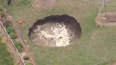 Các nhà chức trách cho hay khu vực này trước đây từng là một hầm mỏ và đó có thể là nguyên nhân tạo nên hố nước khổng lồ kia.