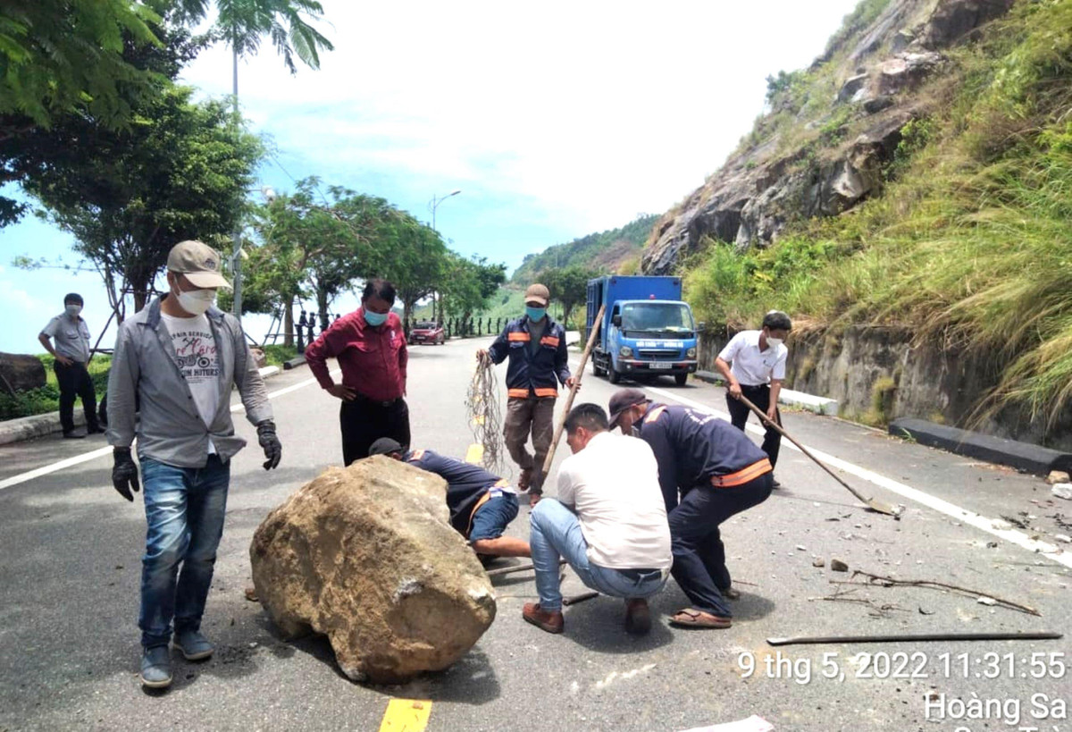 Ngay sau khi tiếp nhận thông tin vụ việc, đơn vị quản lý tuyến đường là Công ty CP Quản lý Cầu đường Đà Nẵng phối hợp Trung tâm Quản lý hạ tầng giao thông huy động phương tiện, nhân lực thu dọn đá rơi trên đường để bảo đảm an toàn giao thông cho người dân.