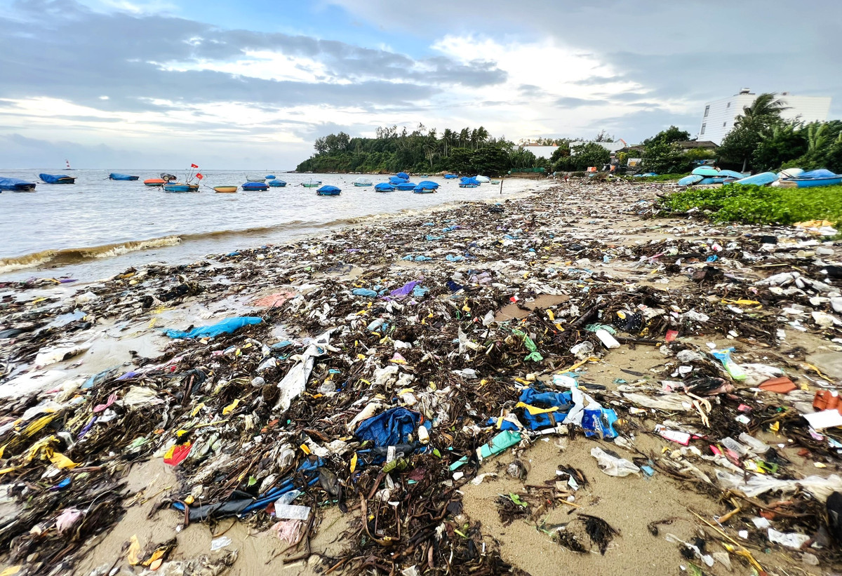 Sóng vỗ xô vào bờ, cuốn theo lượng lớn rác thải khiến khu vực này trở thành "điểm đen" về ô nhiễm môi trường.
