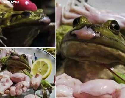 Không ít người đã tỏ ra kinh ngạc sau khi xem xong đoạn video được đăng tải trên website Stomp về món ăn có tên gọi sashimi tươi sống bởi món ăn này bao gồm cả một con ếch vẫn còn sống, ngồi chồm chỗm trên đĩa đá dù nó đã bị lột da, bỏ nội tạng.