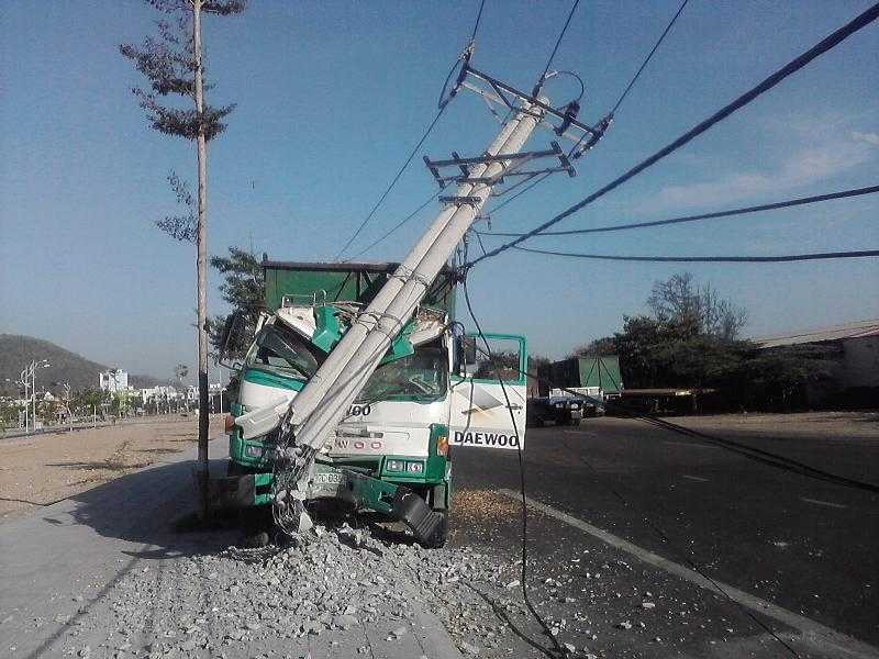 Vào khoảng 0h15 ngày 4/7, một xe tải chở dăm bạch đàn mang biển số 77C – 038.19 chạy hướng từ ngã ba Phú Tài về Cảng Quy Nhơn đã lao lên vỉa hè và tông trực diện vào trụ điện trên vỉa hè Quy Nhơn Lakeside Villa phía Nam đường Đống Đa, cách cầu Đống Đa 1, thuộc tổ 20, khu vực 3, phường Thị Nại, TP. Quy Nhơn (Bình Định).