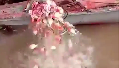 Trong video, ngay khi người đàn ông vừa nhúng chiếc đầu bò xuống vùng nước đục, hàng chục con cá piranha lập tức lao vào xâu xé và rỉa tới tận xương trước khi lặn mất tăm khi miếng mồi bị kéo lên khỏi mặt nước.