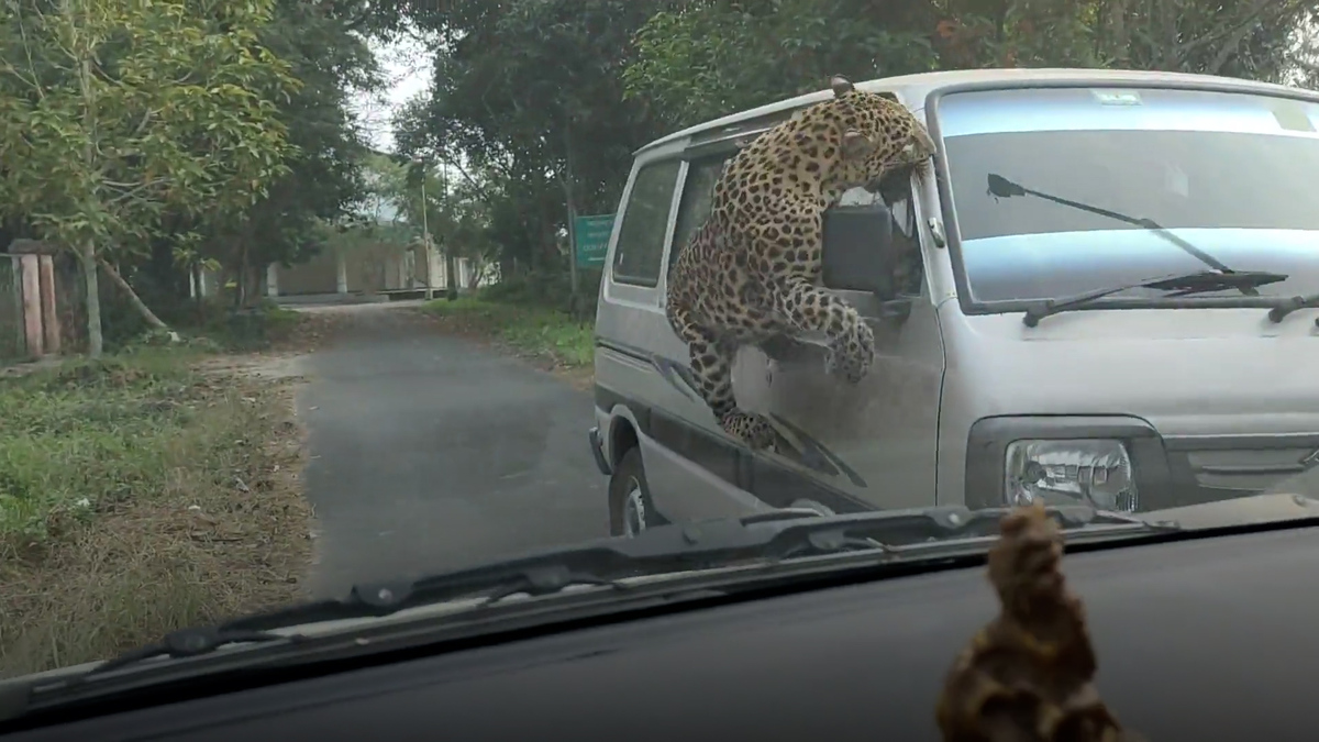 Một con báo đã tấn công chiếc xe chở khách ở Ấn Độ sau đó chạy trốn vào nhà dân ở Jorhat, Ấn Độ.