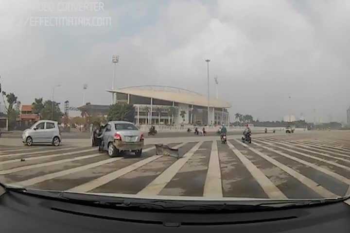 Kinh hoàng cảnh Kia Morning tông Toyota xoay 180 độ trước sân Mỹ Đình