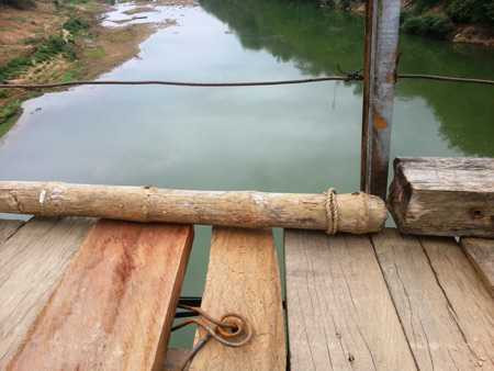 “Tuy nhiên, hiện nay các thanh gỗ hai bên lan can cầu đã bị hư hỏng rất nặng. Nhiều thanh ray dọc cầu cũng đã bị đứt nên phải hàn. Bên cạnh đó, hệ thống dây chằng từ hai bên cáp xuống thành cầu bị yếu nên đến mùa mưa bão, nước sông Mã dâng cao, bà con không dám qua lại vì chiếc cầu rung, lắc quá mạnh”- ông Quản nói.