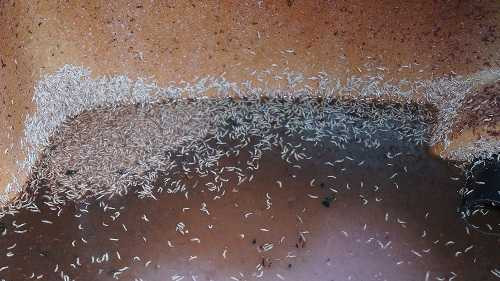 | Hàng ngàn con dòi nhúc nhích bên trong chiếc thùng nhựa màu xanh |