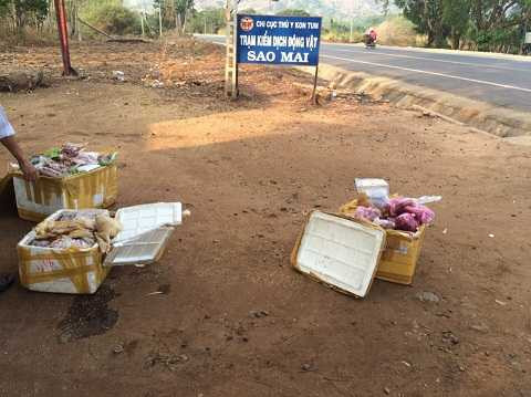 Tài xế Tòng khai nhận, số thịt trên được người đàn ông lạ thuê chở cho một nhà hàng tại TP Kon Tum để làm đám cưới.