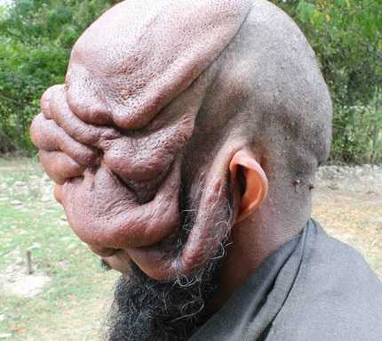 Mohammad Latif Khatana, 32 tuổi đến từ Kashmir, Ấn Độ, không thể nhìn thấy hoặc làm việc do các khối u phình to trên khuôn mặt của mình.