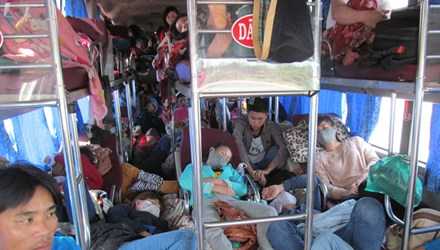| Nhiều xe khách lợi dụng lối đi trên xe để nhồi, nhét khách bị phát hiện. |