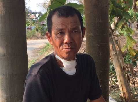 | Nạn nhân Huỳnh Văn Hùng với vết thương khá nặng ở vùng cổ vẫn còn bàng hoàng sau vụ cướp (Ảnh: Công an nhân dân) |