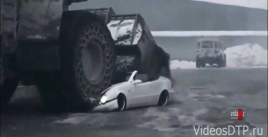 Khi đang quay video phỏng vấn thì người quay phim bất ngờ quay luôn được cảnh chiếc xe ủi khổng lồ đi qua, đè bẹp dúm xe ô tô con.