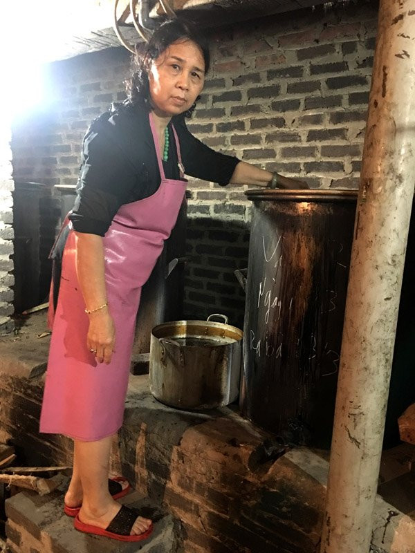 Lương y Nguyễn Quý Thanh trong lò nấu thuốc.