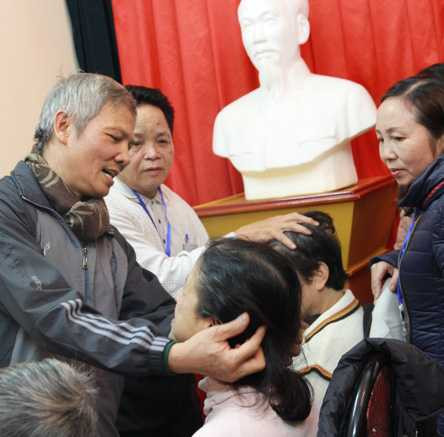 Sau khi anh Nhân bấm xong cho cụ bà 88 tuổi, tôi hỏi chuyện, thì bà cụ bảo nghe rõ mồn một, dù trước đó bà "điếc lòi". Một tai bà cụ bị thủng màng nhĩ nên không nghe được, còn một tai nghe quá kém. Sau khi được bấm huyệt, tai nghe kém đã nghe rõ, còn tai thủng màng nhĩ cũng nghe được bập bõm.