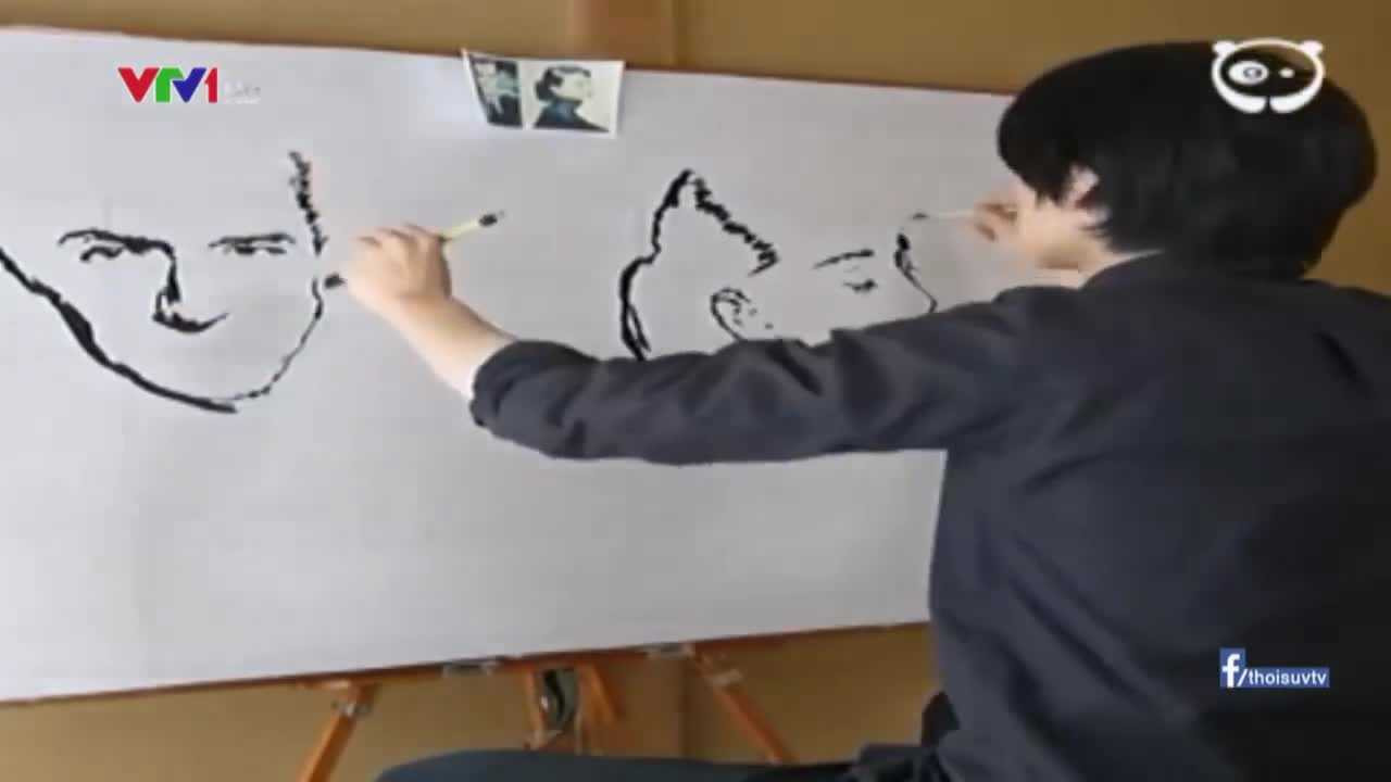 Kinh ngạc chàng trai dùng 2 tay vẽ cùng lúc 2 bức tranh khác nhau