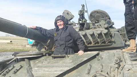 | Cụ Izmail trên chiếc xe tăng T72 |