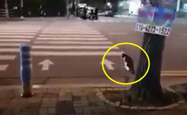 Clip quay tại Hàn Quốc ghi lại cảnh chú mèo kiên nhẫn đợi đèn đỏ mới yên tâm chạy sang đường khiến nhiều người kinh ngạc.