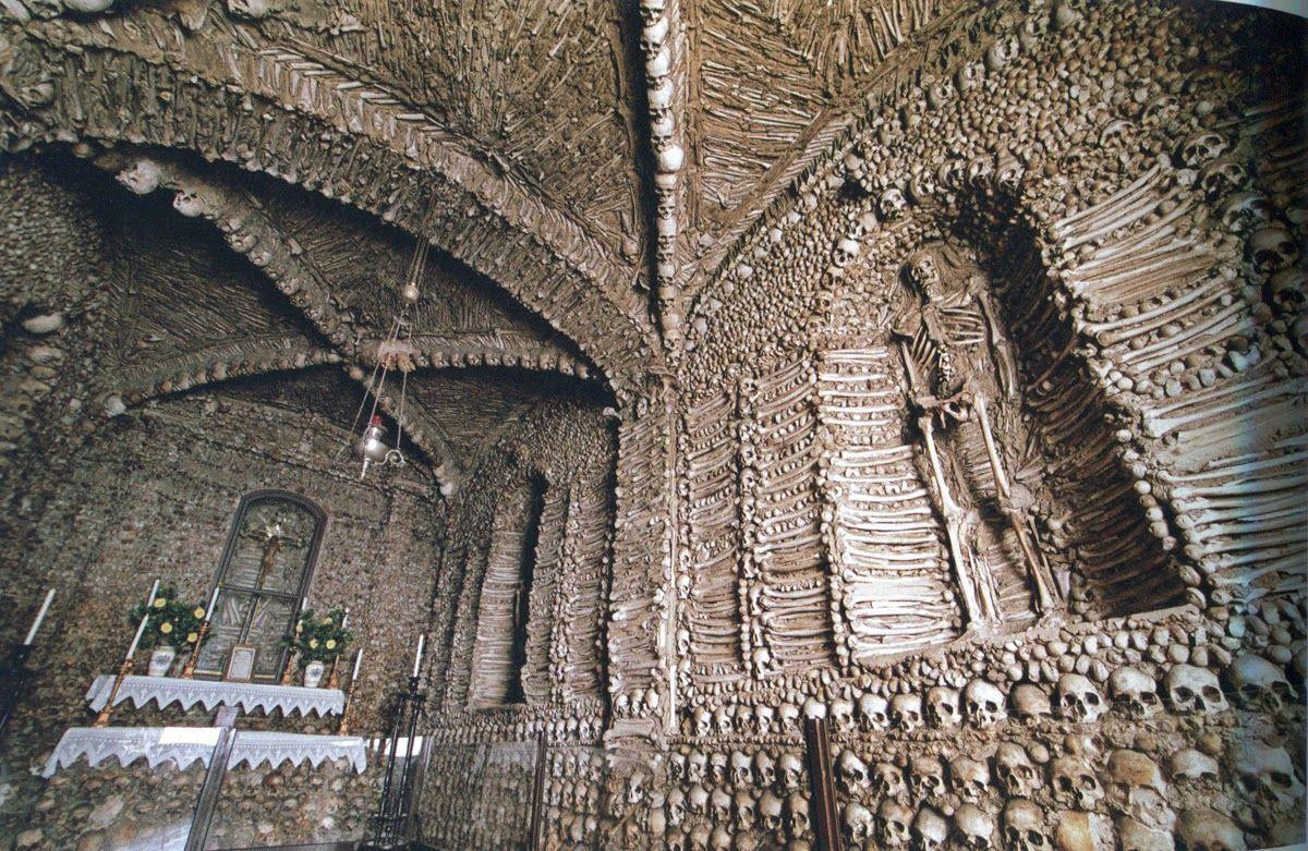Các bức tường của nhà thờ nhỏ bé này được xây dựng vào năm 1776, được xếp bằng đầu lâu và xương của 3.000 người. Những bộ hài cốt được trang trí trên trần và tường, sắp xếp theo nhiều kiểu khác nhau - chủ yếu là các xương đan chéo lặp lại theo phong cách Jolly Roger.