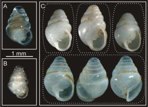 | So sánh loài sên mới (hình A) với các loài sên cùng họ. |