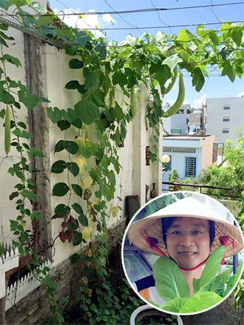 Tận dụng sân thượng, ban công, nhà thiết kế Thuận Việt ở TP HCM trồng được rất nhiều loại rau củ cho gia đình. Sau thời gian đầu trồng nhỏ lẻ, anh đã có nhiều kinh nghiệm, áp dụng tưới tự động, trồng thủy canh một số loại cây... nên sở hữu khu vườn xanh tốt quanh năm.