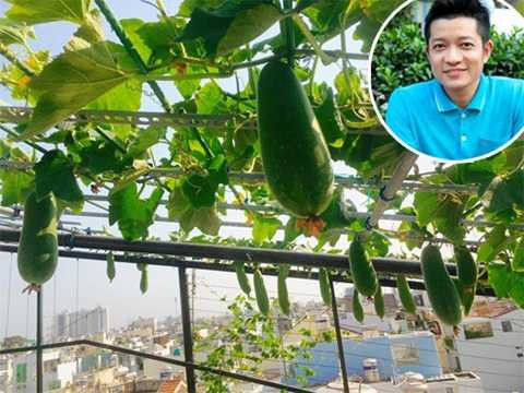 Khi có con, nhạc sĩ Nguyễn Nhất Huy, hiện sống ở TP HCM, quyết định bỏ vườn cảnh, trồng rau sạch cho vợ con. Khu vườn mới gọn gàng với các chậu rau, giàn mướp phát triển khá tốt. Anh còn bứng cả cây hoa sứ đắt tiền để lấy chậu trồng cóc Thái vì vợ hay thèm chua.