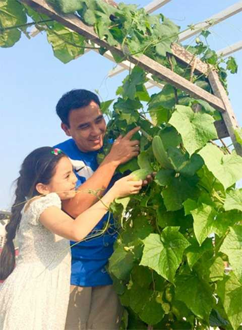 | Quyền Linh và con gái lên sân thượng hái dưa chuột |
