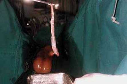 | Hình ảnh một con cá Candiru được bác sỹ phẫu thuật lấy ra từ bộ phận sinh dục của nạn nhân. |