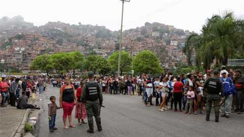 | Người dân Venezuela xếp hàng chờ mua thực phẩm ở chợ |