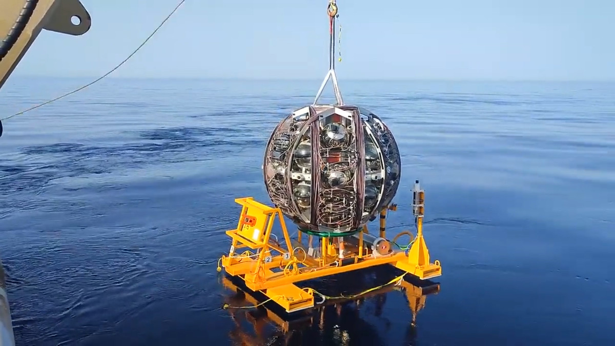 Kính viễn vọng KM3NeT chuyên tìm kiếm hạt ma chiếm thể tích đủ để lấp đầy 400.000 bể bơi Olympic đang được xây dựng ngoài khơi Sicily, Italy.