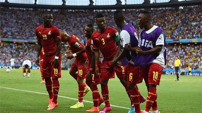 Các cầu thủ Ghana ăn mừng bằng điệu nhảy hoang dã đặc trưng châu Phi