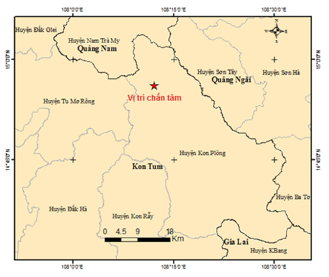 Chỉ trong sáng 10/9, huyện Kon Plông (Kon Tum) ghi nhận liên tiếp 5 trận động đất, trong đó trận mạnh nhất có cường độ 3.5 richter.